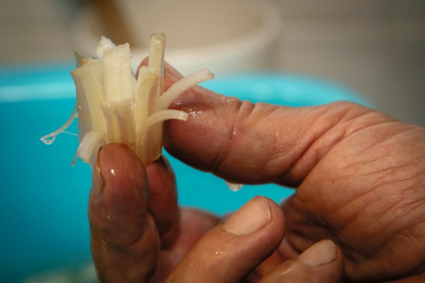 A partir de entonces el tiempo debe ejercer su labor. Para Todos los Santos llega uno de los momentos más importantes y que marca la diferencia del producto: construir los canteros que darán abrigo al cardo. El proceso requiere conocimiento y experiencia. “Antes de nada hay que atar los cardos (que pueden superar los 1,8 m. de altura) para que no se abran. Con una pala se extraen bloques de tierra para construir la parte baja de las paredes y cuando tenemos las bases, subimos en forma piramidal hasta las hojas de cardo, que quedan al aire”, narra . Es tan laborioso como parece pues “este año tardamos un mes en levantar los tres canteros”. Eso sí, cuando se le pregunta a Fernando si todo esto compensa, es contundente: “¿No me ves, que estoy estupendo?”.