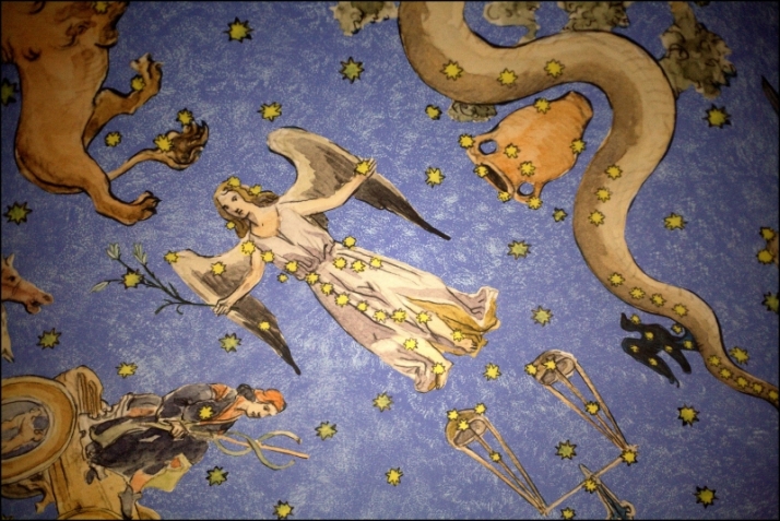 Belleza que no solo engrandece el objeto, belleza que eleva a los fieles y a los estudiosos, porque de Gallego es ese Cielo de una noche de verano de esta Salamanca que el artista fijó en la bóveda de la antigua biblioteca. Por una vez, la antigüedad profana, clásica y sabia, se alía con la fe cristiana y marchan de la mano tocando las música de las esferas al son, no del maestro Salinas, sino de Miguel Sobrino, de Susana Calvo, de Azucena Hernández, quienes desde la ciencia y el conocimiento de los libros en los que se basó Gallego, completan para el Museo el Cielo de Salamanca en una bóveda que embebe al espectador en un paseo por las 48 constelaciones ptolemaicas. Y sube la mirada a lo más alto y se solaza en la cúpula que une al hombre con el creador, al estudioso –se usaba para aprender astronomíay al creyente. Es la mirada que une y no separa, la mirada que cree desde la belleza, el conocimiento, la ciencia y la tolerancia.